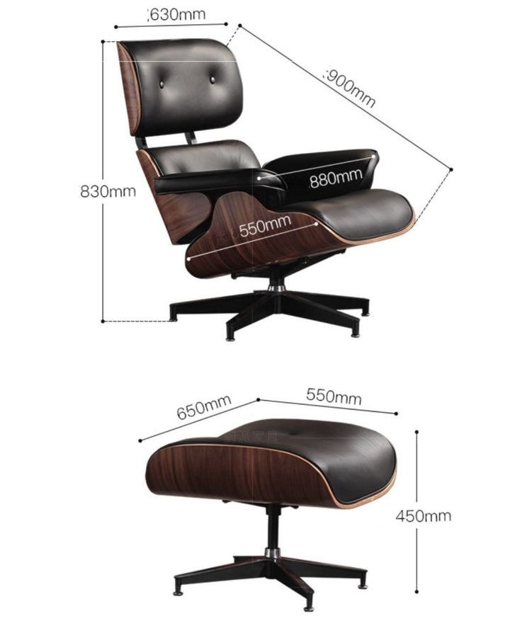 The lounge chair and ottoman are furnishings made of molded plywood and leather. Ergonomically designed for better support and relief of your neck and back, this chair will be your go-to for a retreat from the daily stresses.