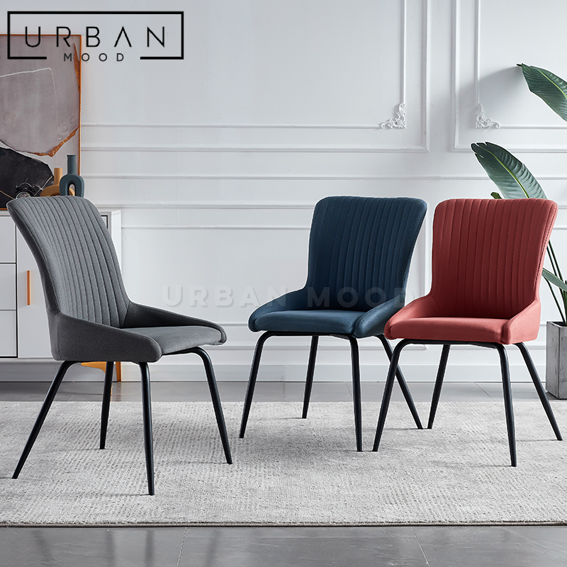 Constructed from high quality faux leather and powdercoated iron, the JOSIAH dining chair features an ergonomically curved backrest for long lasting comfort and support. Perfect for your dining space, home office, or lounge area. Choose between four distinct colours to complement your modern, classic, or luxury themed.