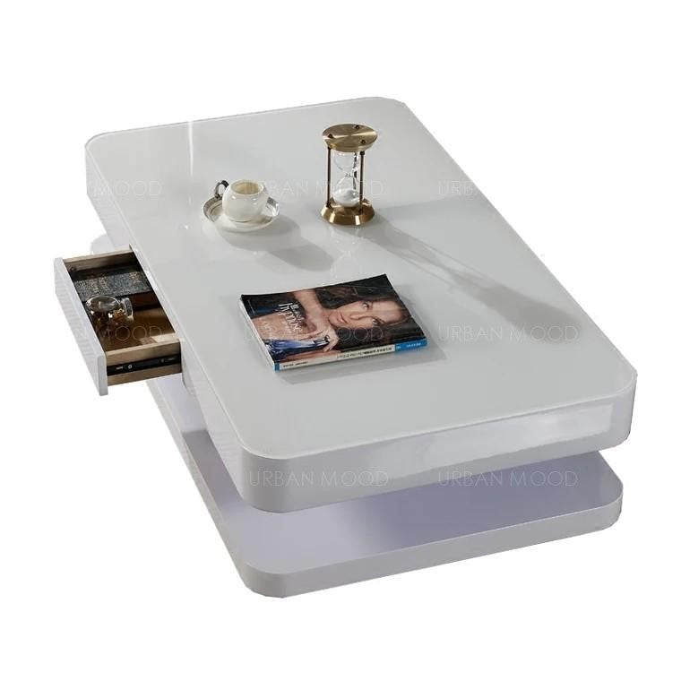 For those who prefer a simplified and clean look, this glossy piano coffee table with pull out drawers will definitely soothe your senses.