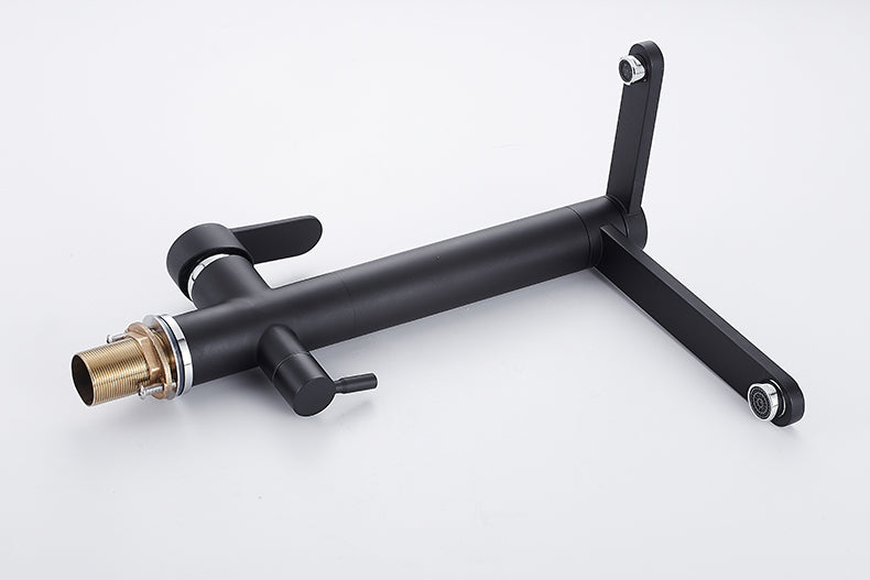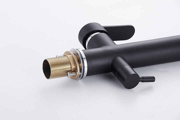 Why stop at tapware when it comes to contemporary monochrome interior design? This versatile double tap matte black art piece allows multi-use of the sink, great for families or large gatherings. Installation is not provided. Plumbing services is required.