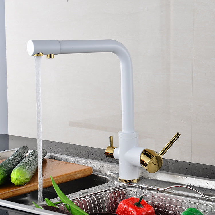 Why stop at tapware when it comes to contemporary monochrome interior design? This versatile matte white art piece has two faucets to choose tap or filtered water. Installation is not provided. Plumbing services is required.