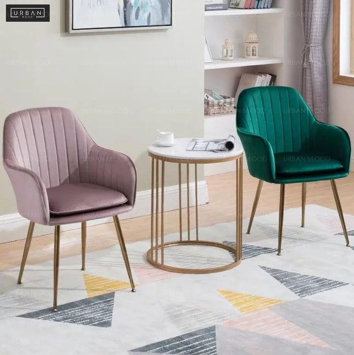 Glam it up with these mid-century velvet chairs which work great as dining or office chairs. Sink into the warm embrace of soft velvet and plush cushioning.