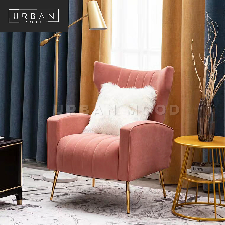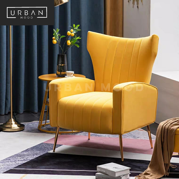 Lean back and enjoy your morning read with our lush and plush Oregon lounge chair. Built with manufactured wood inlays, high density sea foam and wrapped with soft velvet, the armchair features a tall wing back design, making this an ideal accent piece for your seating ensemble in the living room, lounge room, or bedroom.