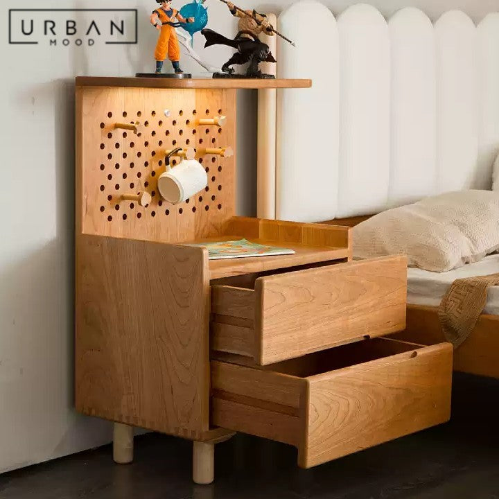 TESSO Japandi Solid Wood Bedside Table