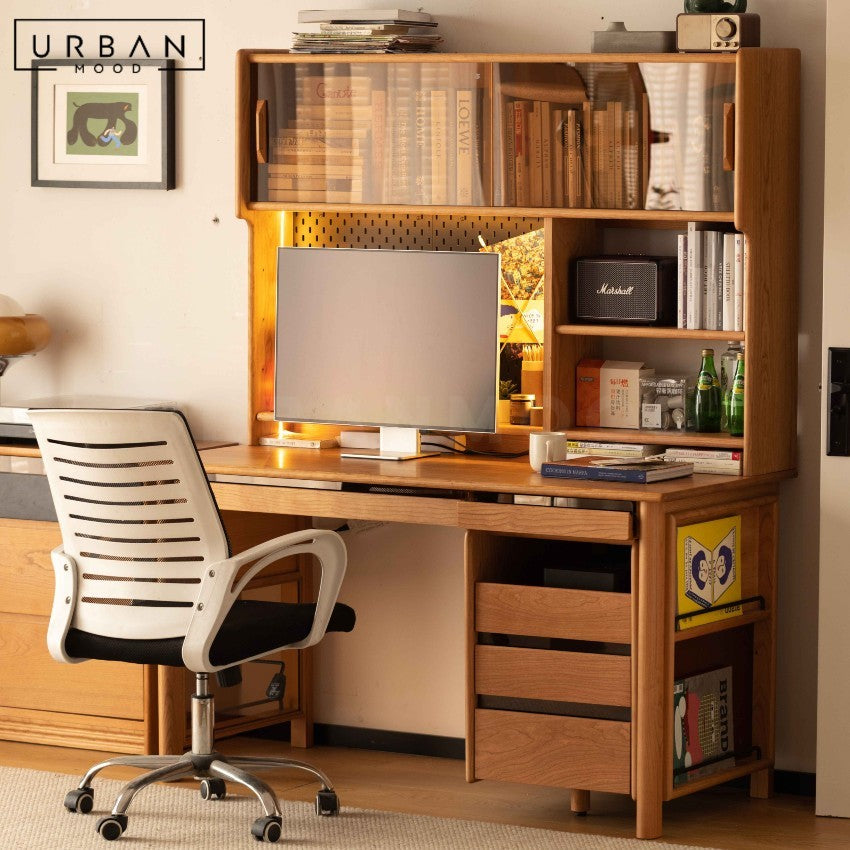 VANCOUVER Modern Solid Wood Study Table with Cabinet