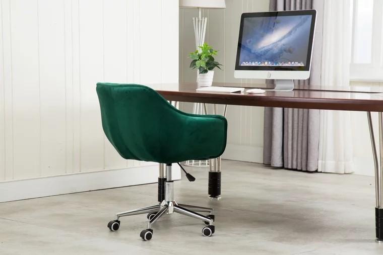 The Plum swivel chair comes with a twist on the usual velvet armchair, with wheels for easy mobility. Perfect for the study, office, or dresser.