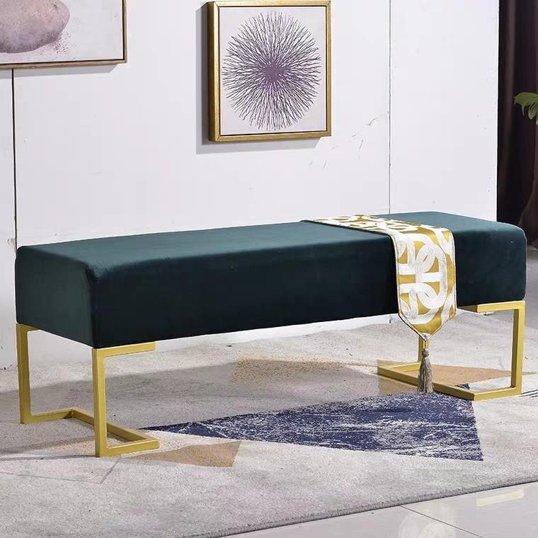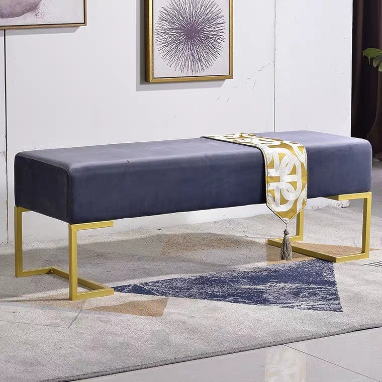 Enjoy this stylish bench along your foyer, at the foot of your bed, or as a dining bench to complement your marble or wooden table. Featuring a thickly padded seat cushion and angled brass legs, the Bree ottoman ensures that you are comfortable for long hours.