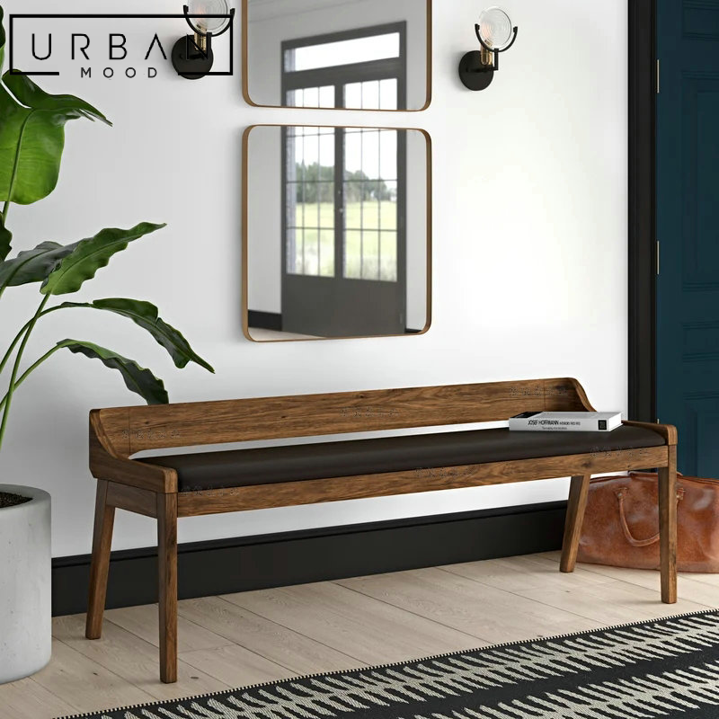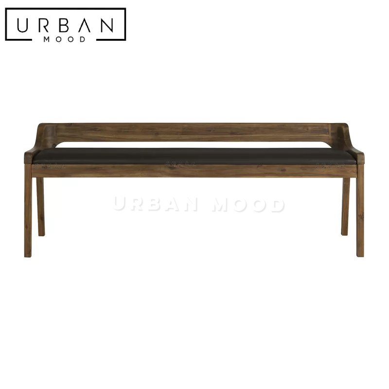 Featuring a clean-lined and sleek structure, our CABANA bench is constructed from high quality pine wood and upholstered in durable faux leather. A beautiful addition to your entryway, front porch, or dining suite, the bench accentuates the coziness of any rustic or cottage-inspired room settings. Complete the look with our GAIA wall mirror and MARVIN dining table for a modern twist.