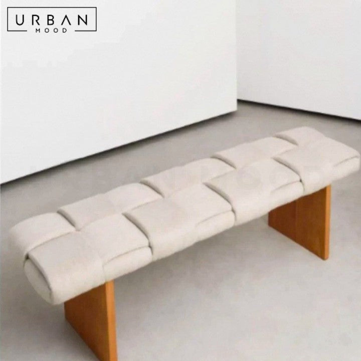 Define your dining room or entryway with our versatile CORBA bench. Featuring wood legs in black or maple, this bench boasts a sturdy pine wood internal structure and high-density foam for long-lasting support. The cotton linen fabric upholstery showcases a beautiful cross-stitched design, adding a touch of elegance to any space. Perfect for seating, storage, or as a decorative accent, this bench is a practical and attractive addition to your home. Durable and comfortable, it's ideal for daily use and can be easily integrated into your existing decor.