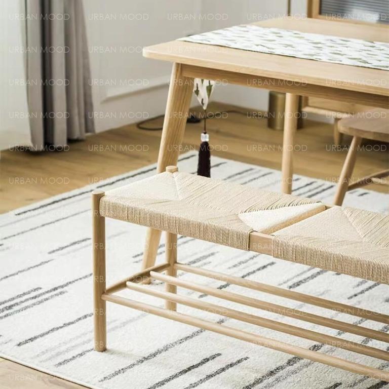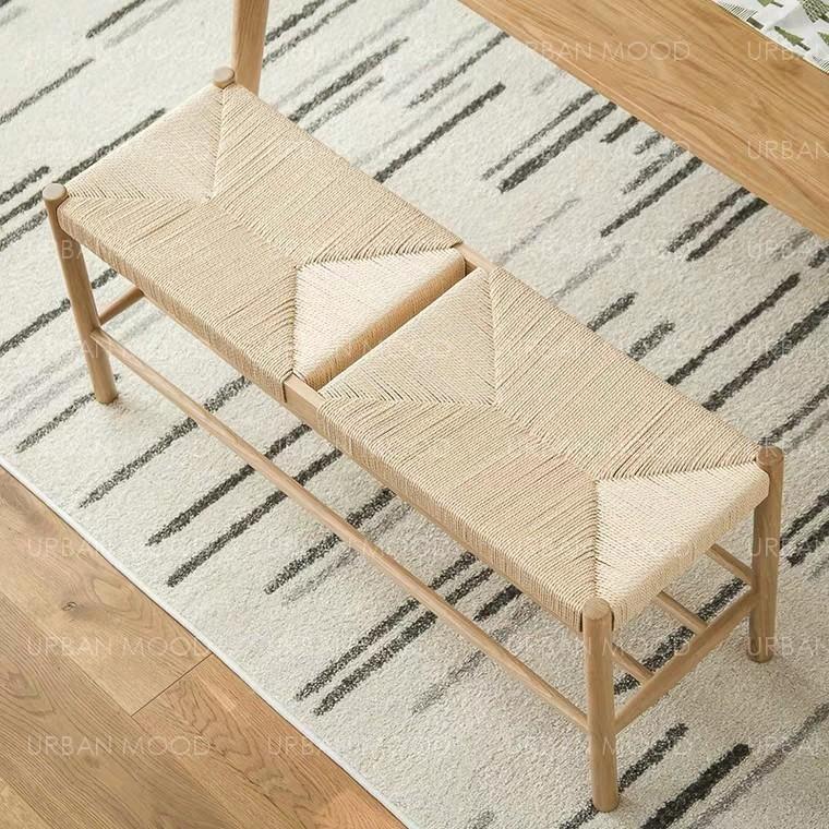 Inspired by Carl Hansen's Y chair series, the Cyran solid wood bench adopts the same materials and make, to create a communal seating option for those looking for a creative way to pair their wishbone chairs with. Featuring a lovely shade of oak and tight woven seat, this bench or footstool is ideal for dining, outdoor, or foyer usage.