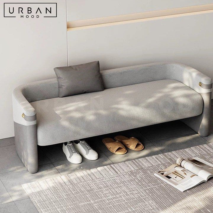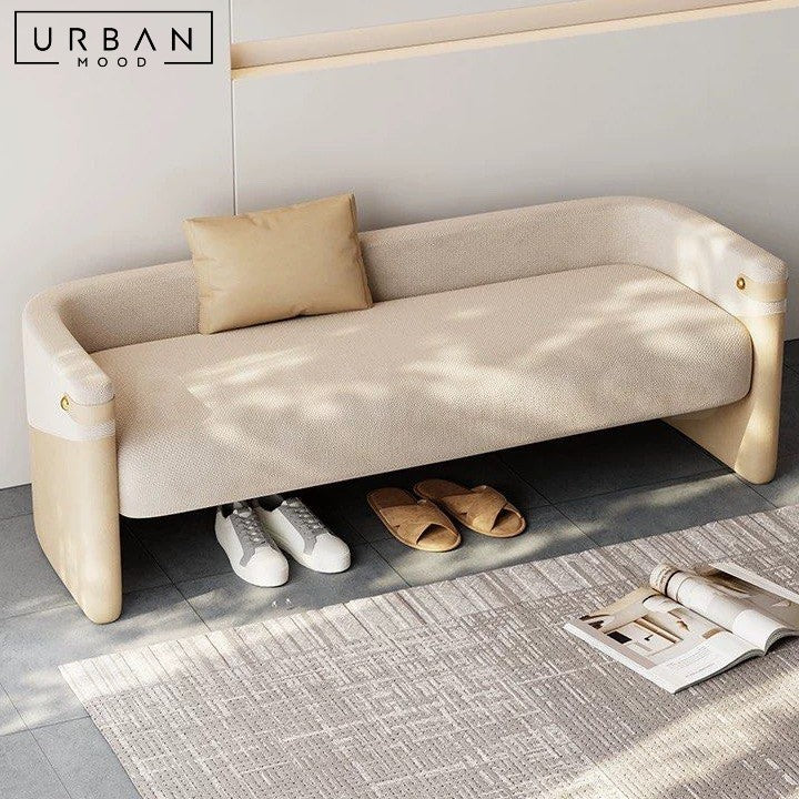Add a practical and comfortable touch to your entryway with our versatile GILLES ottoman. Upholstered in durable fabric, this ottoman features a low backrest, perfect for casual seating or propping up your feet. Its clever design also allows for stowing shoes or other items underneath the bench, keeping your space organized and clutter-free. Ideal for placement in entryways, living rooms, or bedrooms, this ottoman provides a cozy spot to relax and unwind, while also keeping your belongings tidy and within reach.