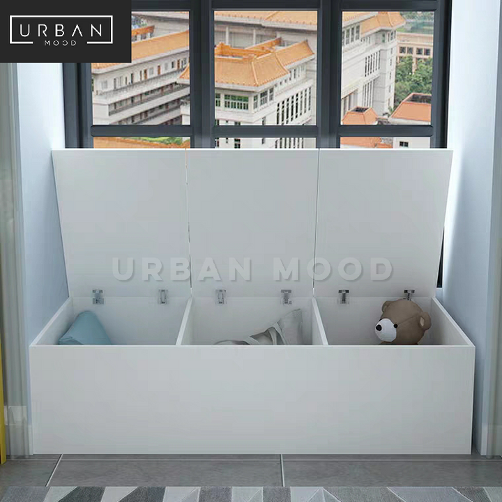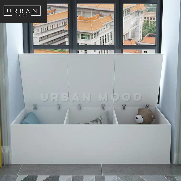 Purpose small corners or your window aisle into storage space and lounge areas with the fully customizable Shire windowsill ottoman storage bench. Made from MDF boards with a choice of veneer finishes, the cabinets will fulfill your shelving and storage needs and provide extra sitting room for guests and family.