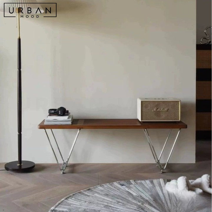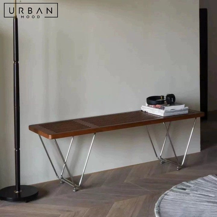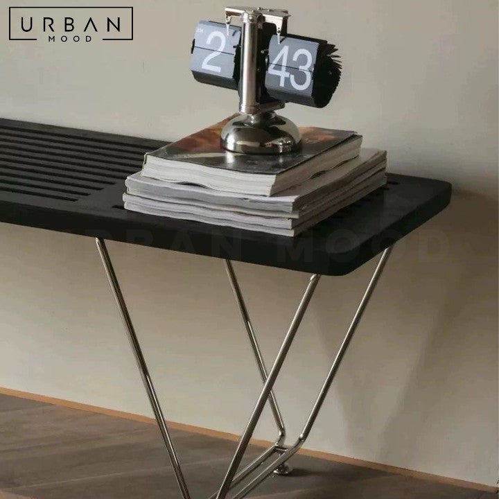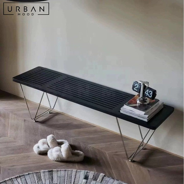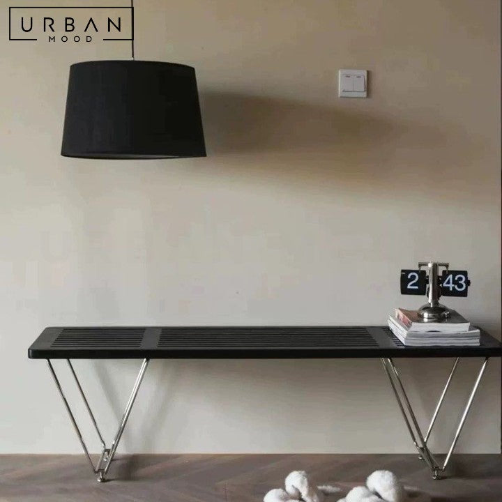 A striking piece that seamlessly combines modern design with robust materials, our KOLBE Bench is crafted from high-quality ash wood and features a chrome frame, ensuring durability while maintaining an edgy aesthetic. Its minimalist profile illuminate any hallway, living room, or outdoor space with a touch of sophistication.