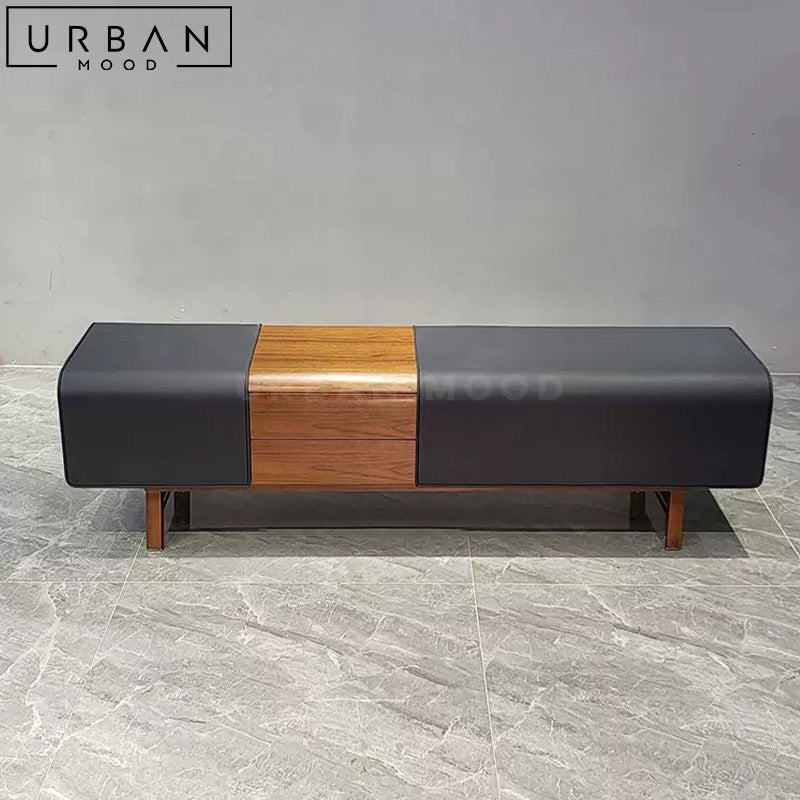 Add a touch of hotel luxury to your entryway or bedroom with our MRIAE bench, featuring a clean-lined profile constructed from a solid wood internal structure and upholstered in luxurious fabric. With its sleek and functional aesthetics, this bench proves to be a handy storage solution as well with two drawers integrated into the seat. A beautiful addition to your modern or classic entryway, living room, or bedroom, this ottoman offers both comfortable seating and practical storage space.
