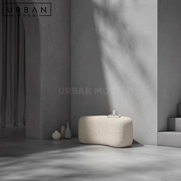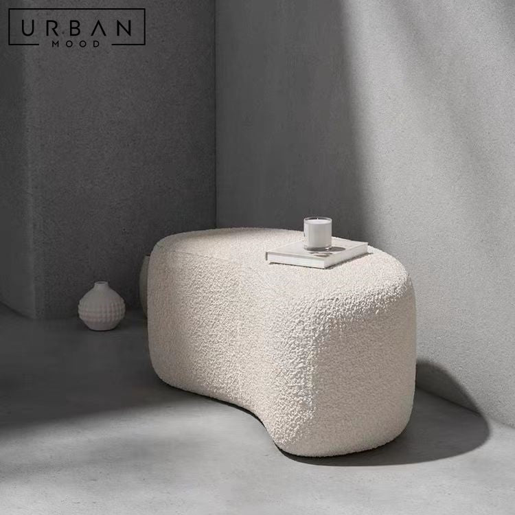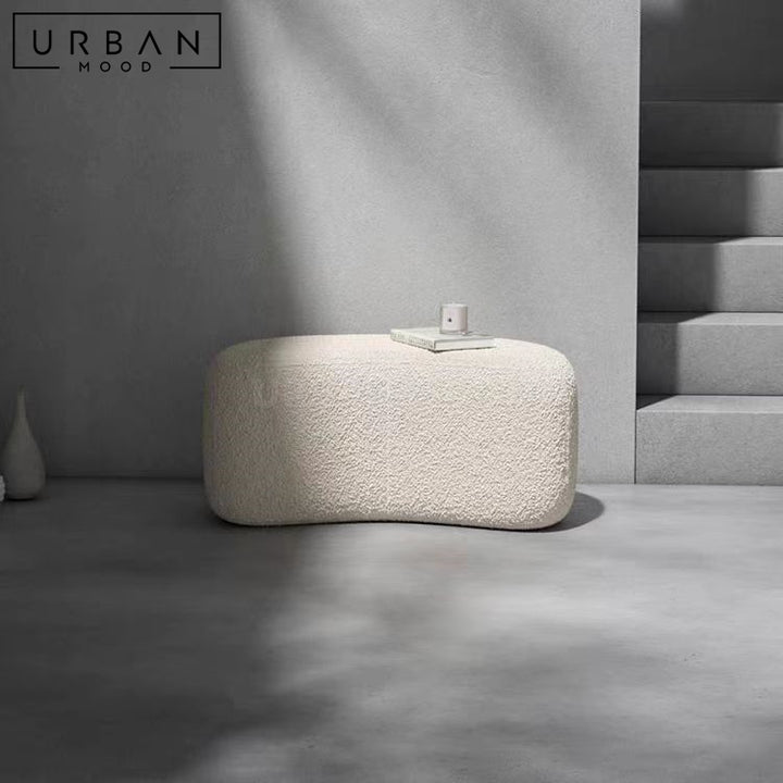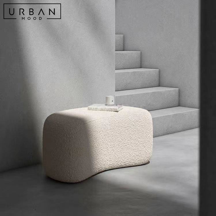 Featuring a playful crescent shape, our NEO ottoman offers a unique silhouette, ensuring it makes a bold statement in any modern or minimalist space. The plush boucle fabric provides both comfort and tactile appeal, and brings functionality whether used as a footrest or additional seating in your hallway, living room, or bedroom.