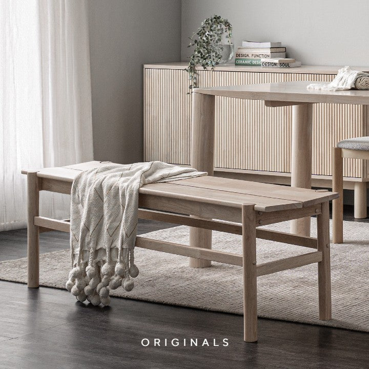 Designed to last through the decades, our PROPHET bench is crafted with highly durable oak wood for a stable base, while featuring a smooth white washed finish. Its premium materials and workmanship promises longevity and makes an excellent choice for the entryway, dining space, or balcony.