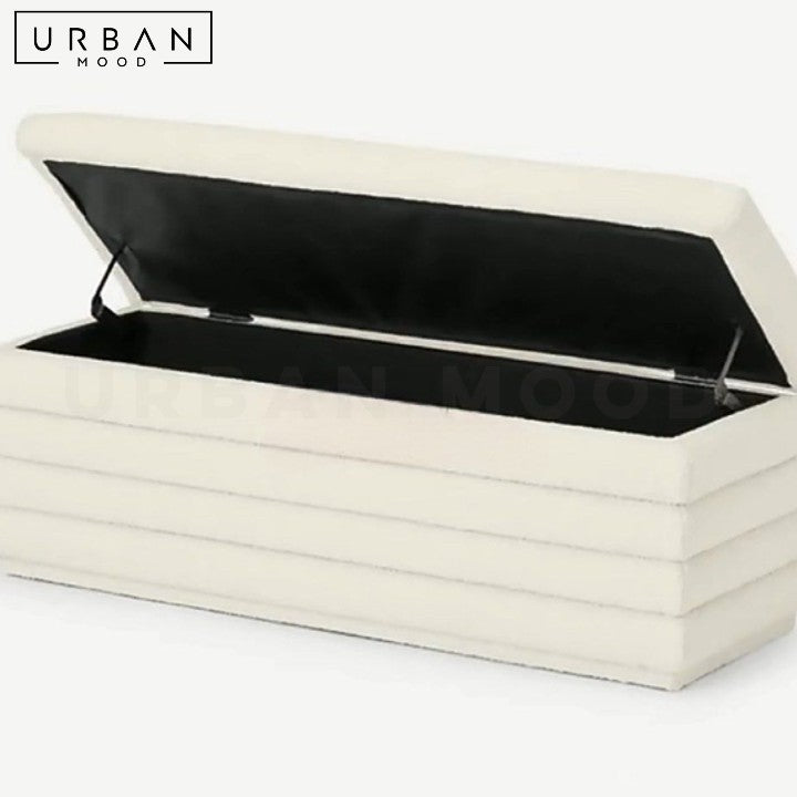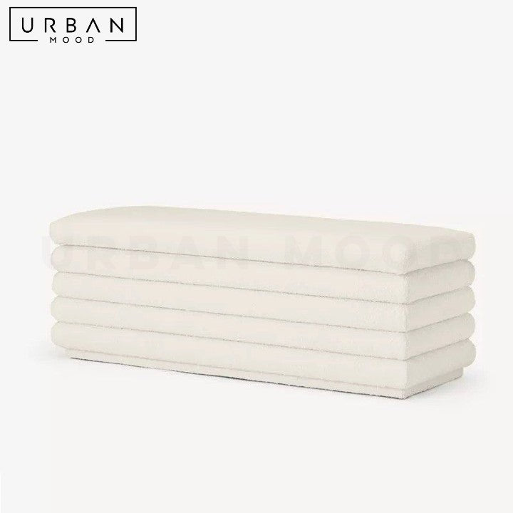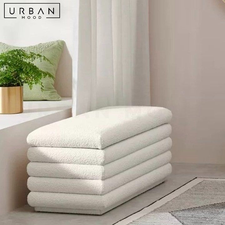 Upholstered in soft boucle or luxurious velvet, our bench is versatile in both its design and form. Its internal pine wood structure ensures durability, while the foam cushion provides plush seating. Perfect as additional seating in the foyer or living room, this ottoman adds a minimalistic accent to any modern home.