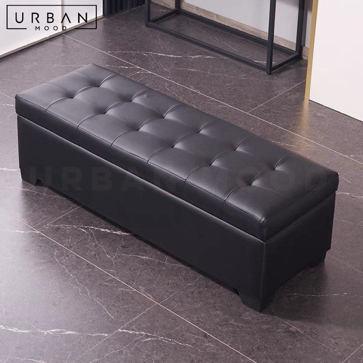 Constructed from premium faux leather, our STEAD bench provides a convenient storage solution for your entryway, living room, or bedroom with its versatile design. Its high resilience foam cushion ensures superior comfort, while the durable pine wood internal structure offers lasting support. Ample storage space allows you to stow away books, toys, or extra linen.