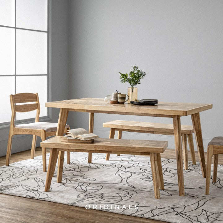 Showcasing a clean-lined form, our craftsmanship. Supported by solid oak legs, it offers lasting stability and warm wood tones that complement a variety of interiors. The seat is built from durable MDF with an oak veneer finish, adding subtle texture and visual harmony to Scandinavian, Rustic, or Vintage entryways, dining rooms, or bedrooms. Complete the look with our ENOCK dining table.