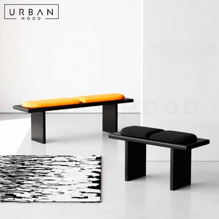 Improve your seating area with our TUNEZ bench. Made from high-quality New Zealand ash wood, this bench offers durability and a classic design. The plush leather cushion provides comfort, while the black ash wood frame adds a modern touch. Perfect for entryways, living rooms, or hallways, this bench is designed for both comfort and practicality. The combination of natural wood and leather creates a warm and inviting atmosphere, making it a great addition to any modern or contemporary home or office.