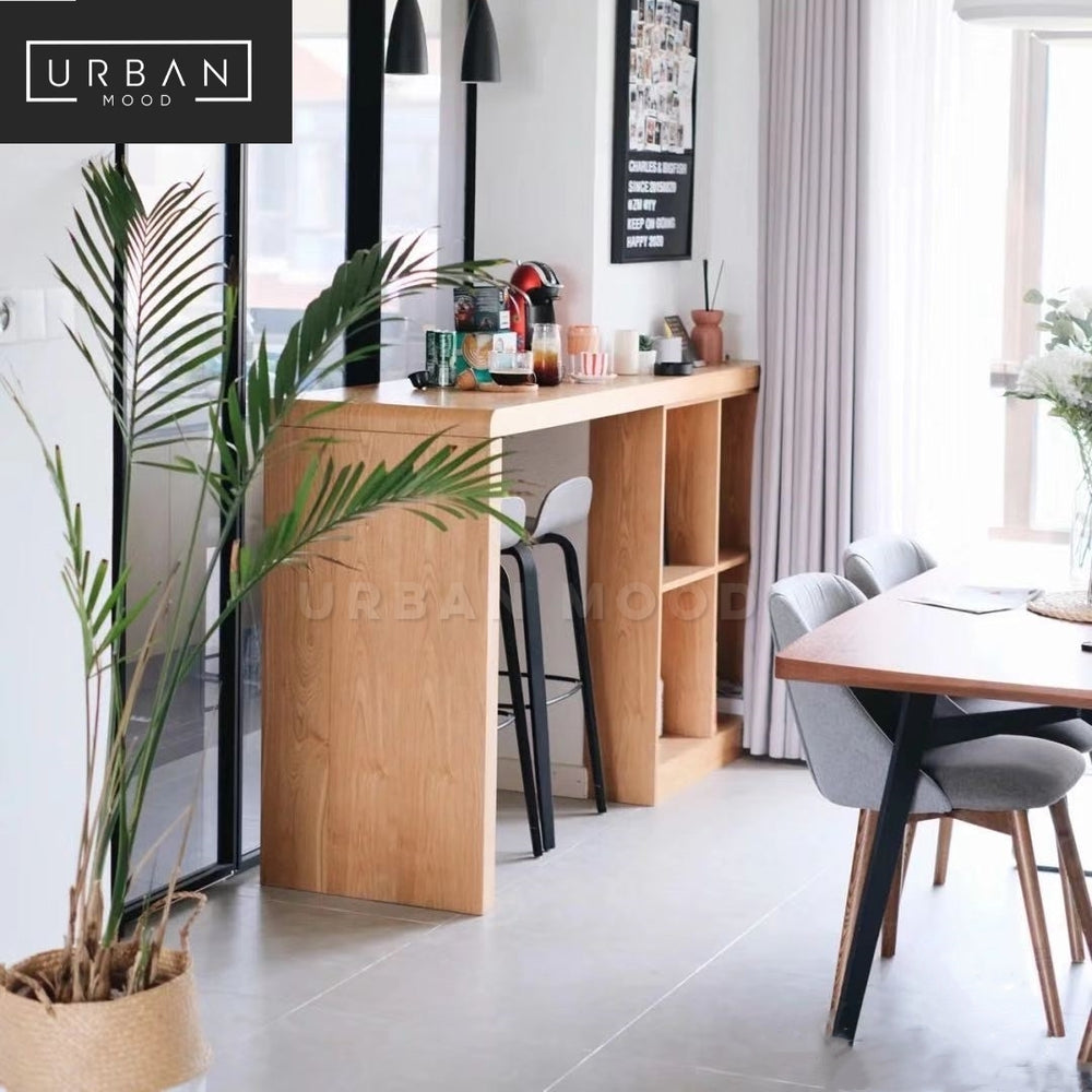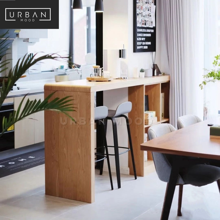 Simple in form and versatile in function, the CALI bar table is crafted from high quality pine wood with a smooth matte finish. A beautiful island addition to your kitchen or a casual wine and dine unit in your balcony, the bar table comes with open shelves for display of your wine collection or ornaments. Perfect for Scandinavian, Cottage, or Minimalist set ups.