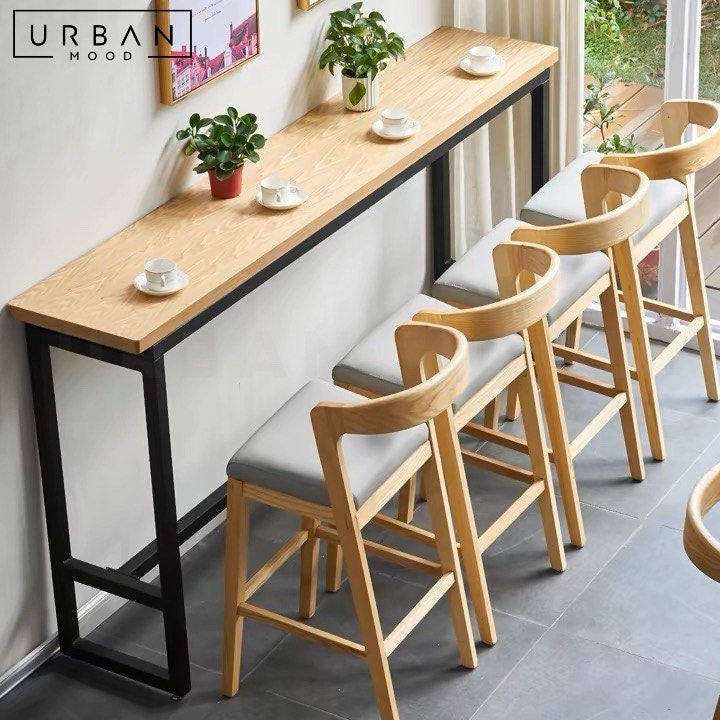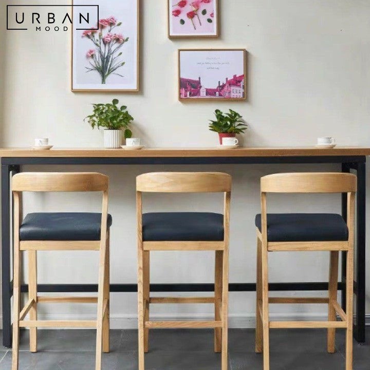Invite nature into your backyard or balcony with our LEVIS bar table, crafted from premium ash wood and balanced on durable metal legs. Complete the Scandinavian look with our matching island chairs upholstered in faux leather. This island table complements any Muji or Japandi-style space.