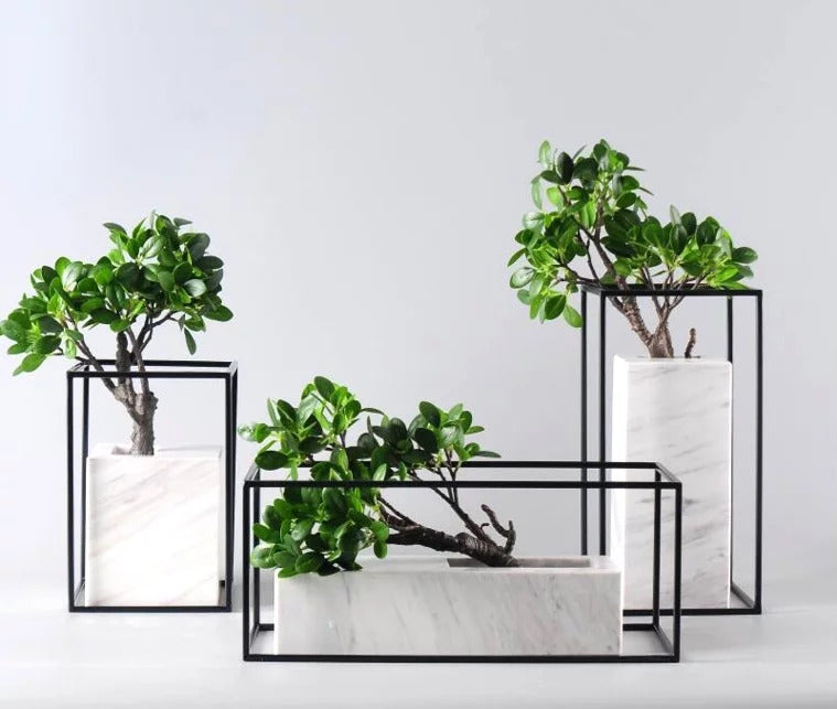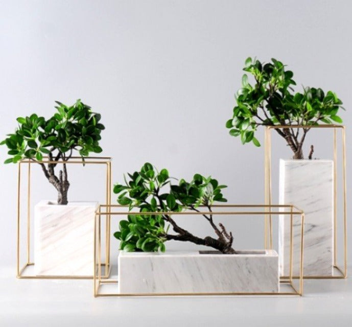 If you love plants but have conservations about how they fit into your modern interior, this combination of glass and faux marble is the answer to an elegant addition of nature to urban living. +$25 for artificial bonsai plant.