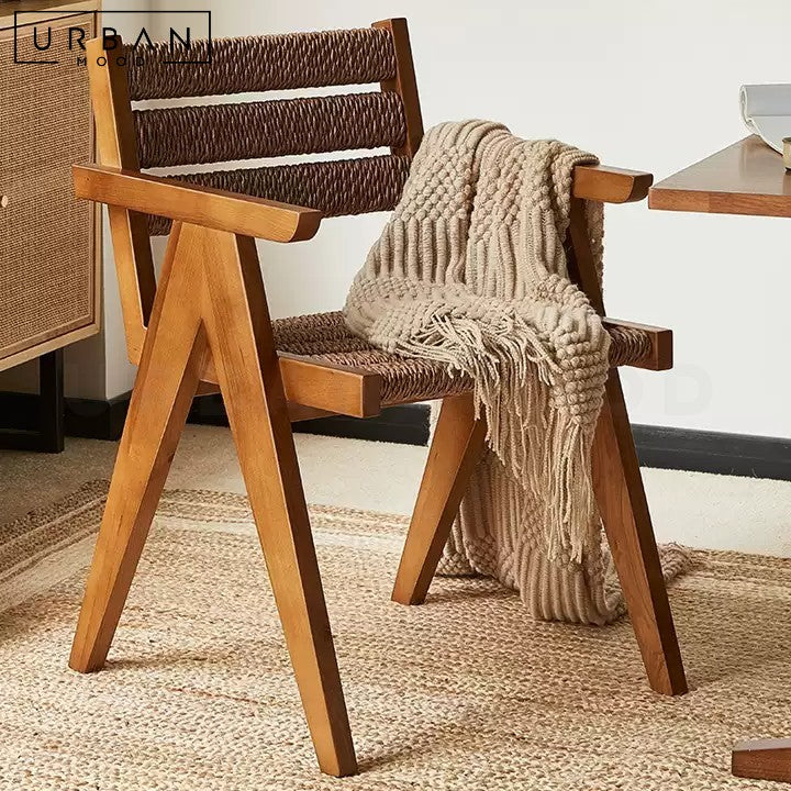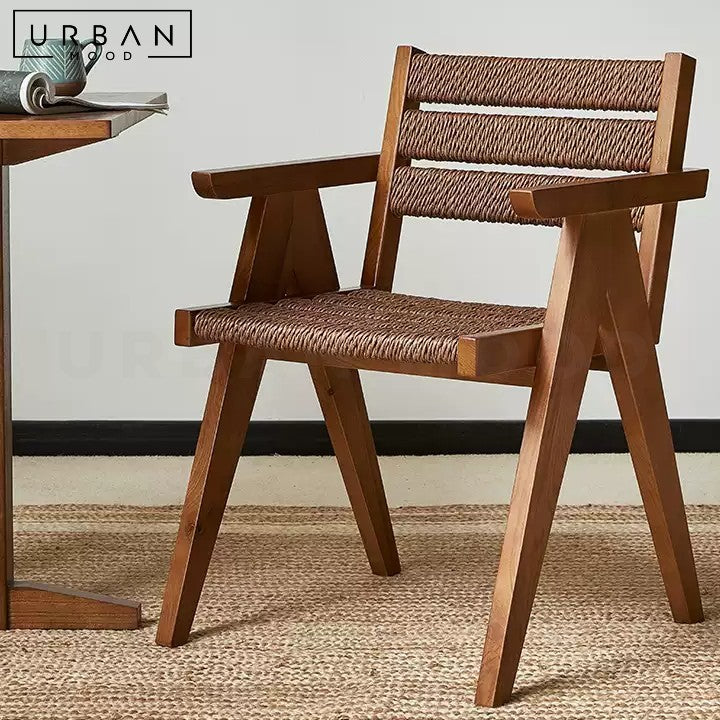 Bring a touch of rustic charm to your dining space with our beautifully crafted TATIANA pine wood dining chair. The rich walnut hue frame adds warmth and depth, while the woven rope seat and backrest evoke a vintage feel. Perfect for those who love a distressed, retro aesthetic, this chair is a unique and stylish addition to any dining table. Its rustic charm will add character to your home or office.