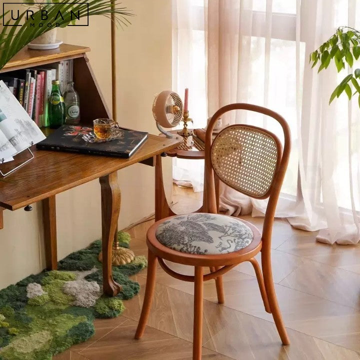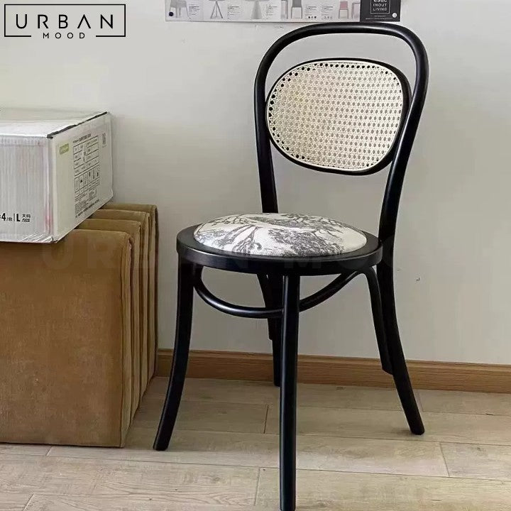 Add a French-inspired accent to your dining space with our ZIN rattan dining chair. Featuring a rounded backrest and seat, upholstered in a beautiful floral fabric, this chair exudes warmth and elegance. The rattan frame adds a natural, organic feel, while the floral pattern brings a pop of color and personality to your table setting. Perfect for placement at a vintage-inspired dining table, or as a unique accent chair in a modern room, this chair's classic design and comfortable curves will make it a favorite gathering spot for family and friends.