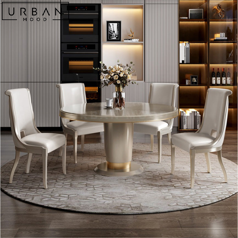 Featuring a clean lined silhouette, our KORSH dining table borrows from ancient roman influences. Crafted from pine wood and balanced upon a fluted column, this table will be an anchor piece in your dining space while providing timeless class. Complete the look with our matching dining chairs and bench for a mid-century vibe.