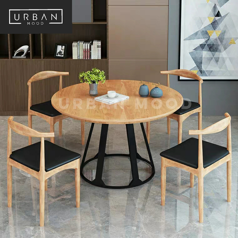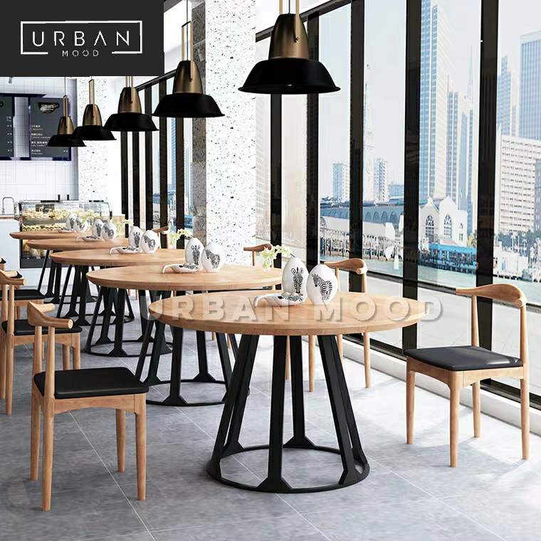 Perfect for intimate gatherings, large parties, or cafe settings, the LOCO solid pine wood table top is founded upon a circular metal base in a matte black finish, a marriage of traditional materials and contemporary design. This dining table will add a touch of natural beauty to modern, rustic or industrial spaces.