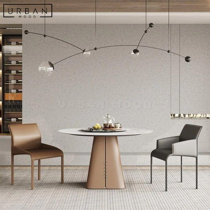 Allow our TIFFIN dining table to take center stage in your dining space with its highly durable sintered stone top, complete with a convenient lazy susan for convenient serving. The table's anchor point is its sleek round pillar leg, enveloped in an intricate ribbed faux leather design, adding a touch of modern luxury. Whether your decor leans towards minimalist chic or classic style, this dining table design will accentuate your decor. Complete the look with our matching dining chairs for a modernised touch.