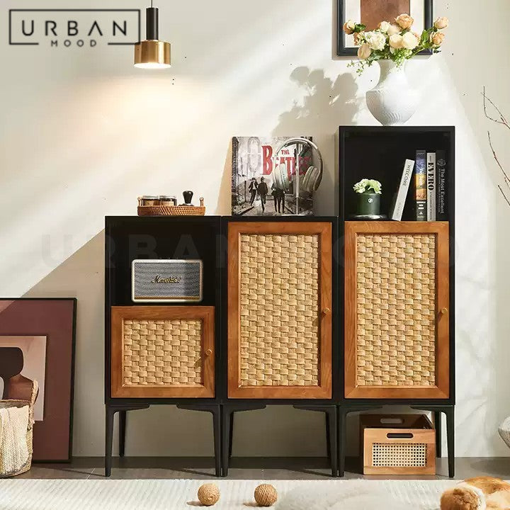 SANNEY Rustic Rattan Display Cabinet