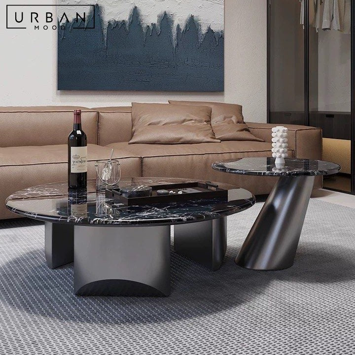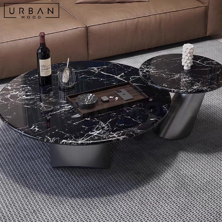 A must-have for Hollywood-inspired interiors, our WUREN round coffee table, is crafted with highly durable sintered stone top in a high-gloss marble finish. Supported by sleek metal legs in titanium black, this sophisticated piece combines luxury and durability. Perfect for glamorous living rooms, its rounded design and premium materials create a focal point for effortless entertaining. The marble print adds classic elegance, while the titanium black legs provide a touch of industrial chic.