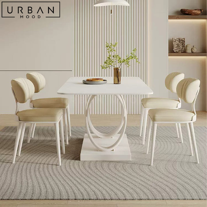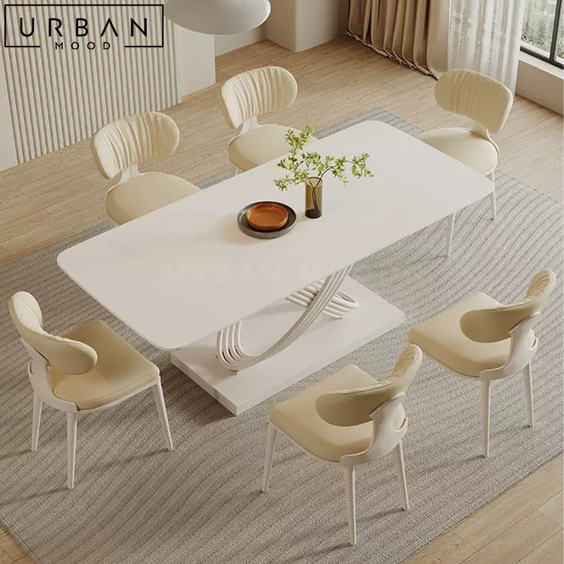 A clean-lined dining set that exudes sophistication, our MAXEN dining table and chairs are constructed from durable sintered stone in a soothing off white finish. Complete the look with our matching chairs for a minimalist touch to your modern or hygge inspired dining space.