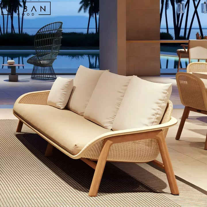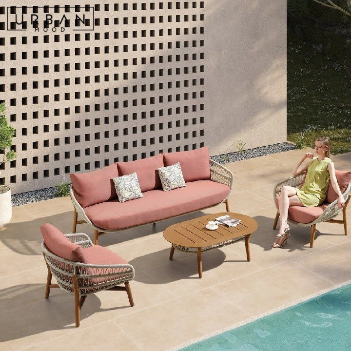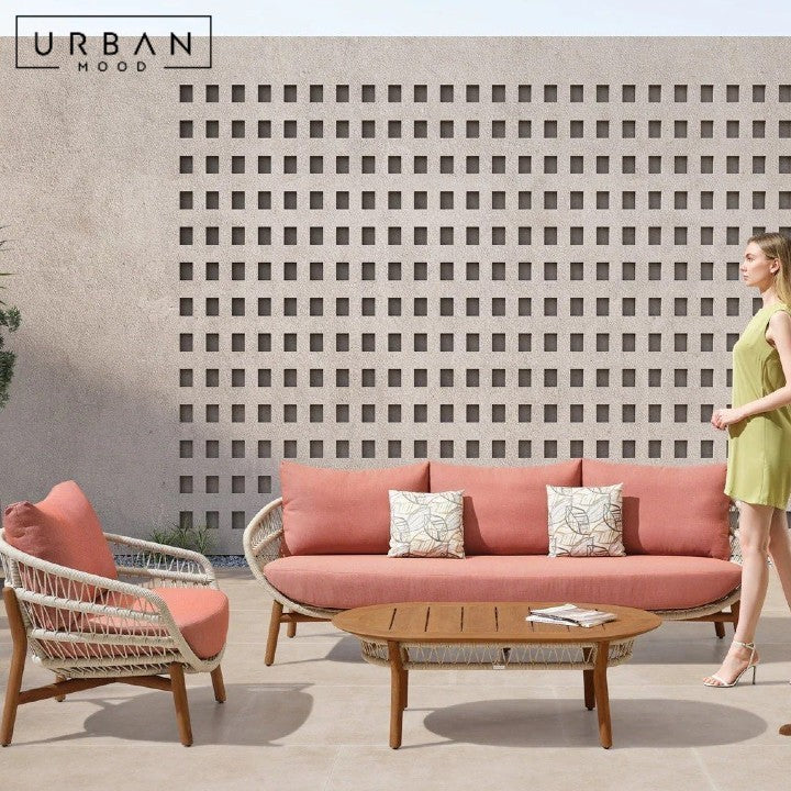 Designed for comfort and durability, our ABBO outdoor series is a fun addition to any modern or Scandinavian outdoor space. Featuring a handwoven all-weather rope and high-quality teak wood, this couch is built to withstand extreme weather without compromising on appeal.