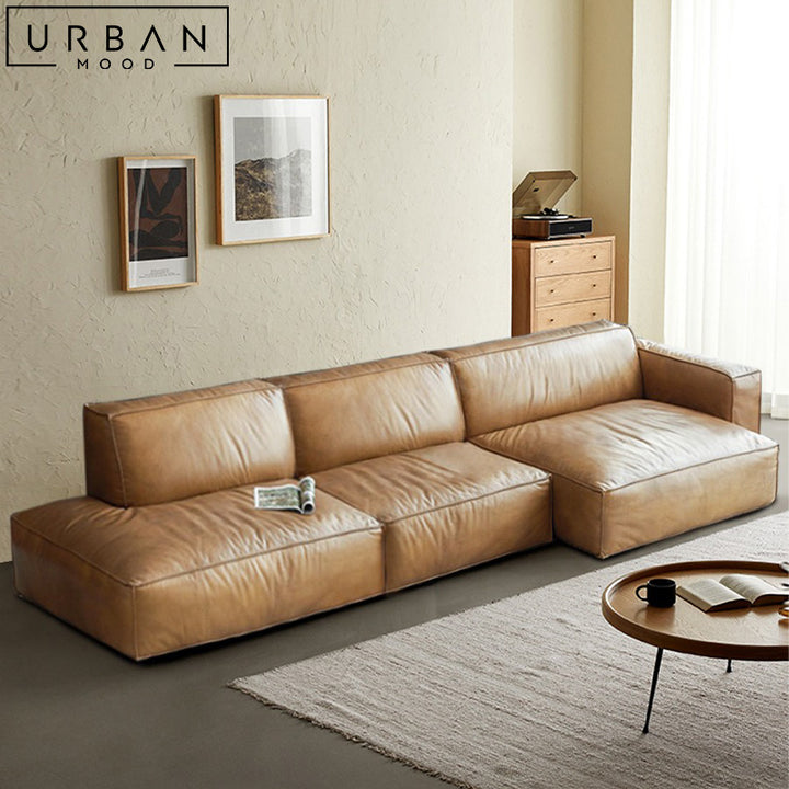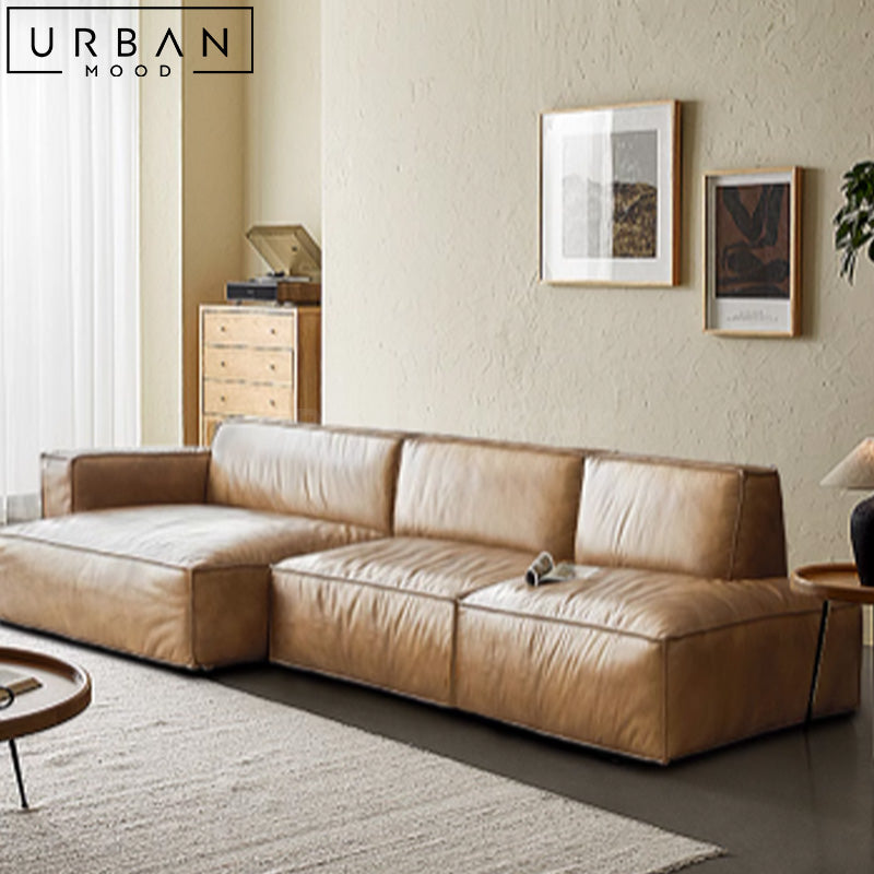 Designed to elevate your living space or office lounge, our HENRY leather sofa features a mid-height backrest and slender gold legs, atop which sit supple leather upholstery exuding comfort and durability, making it perfect for both relaxation and professional settings. Its slim profile and contemporary structure will earn its status as an impeccable statement piece for your modern, rustic, or industrial themed home or office.
