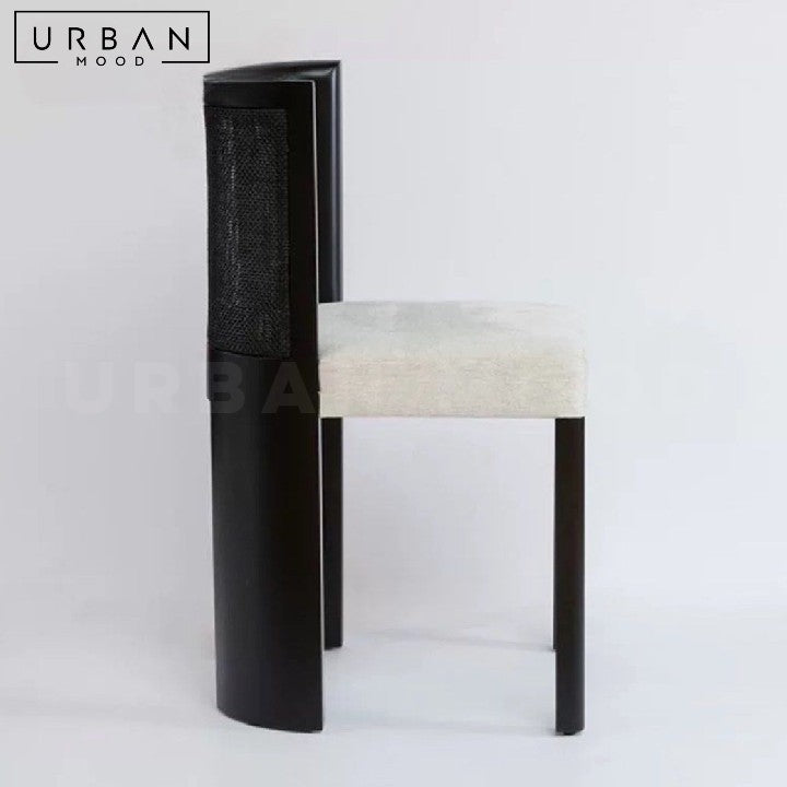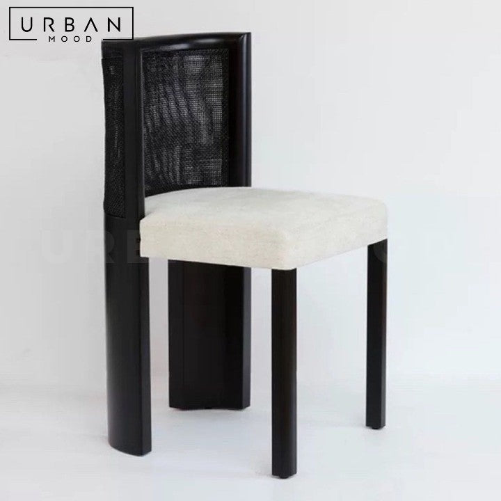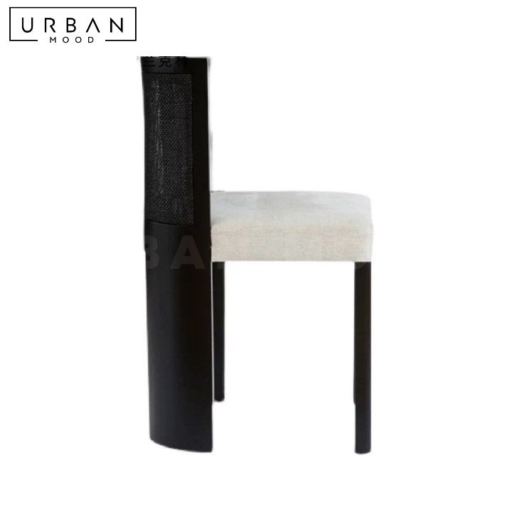 Bring a touch of modern eclecticism to your dining space with our ROXANE Victorian-modern dining chair. Crafted with sturdy oak wood, the backrest and legs provide a solid foundation. The cotton linen fabric seat adds warmth and texture, while the black mesh covering the backrest creates a bold contrast. Perfect for homes, restaurants, or cafes, this chair's unique design makes it a conversation starter. Its modern twist on traditional craftsmanship adds a dash of personality to any dining setting.