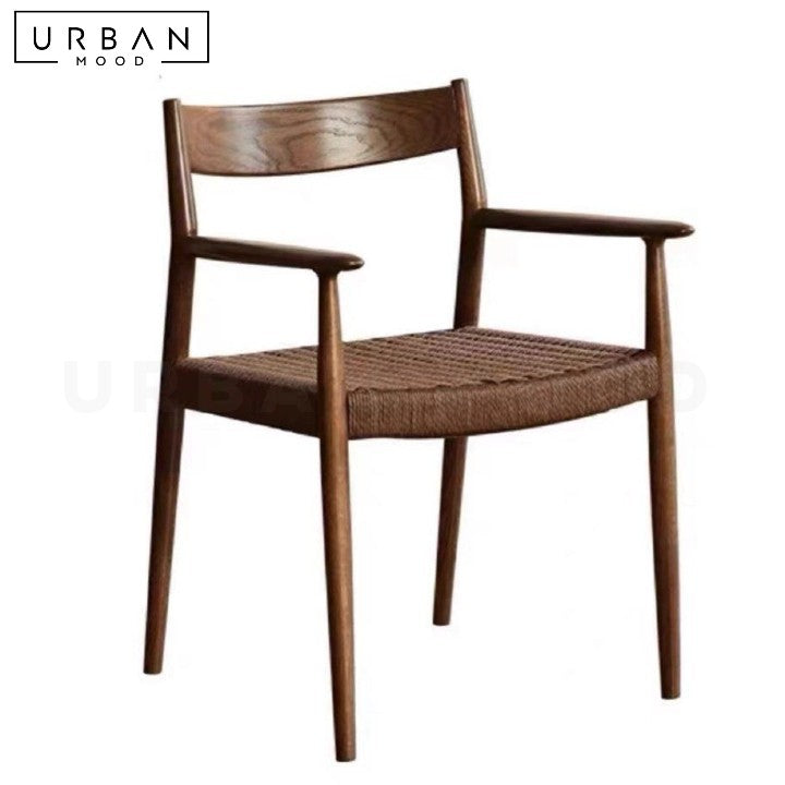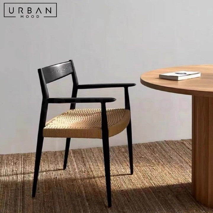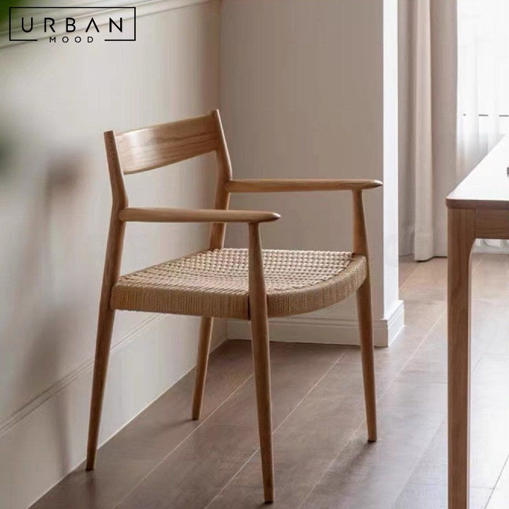 Japanese minimalism meets Scandinavian elegance with our YANEZ chair. Crafted from oak wood, this chair combines natural beauty with exceptional durability. The handwoven rope seat adds a unique texture, enhancing any Japandi, Scandi, or Muji inspired dining space with its understated charm.