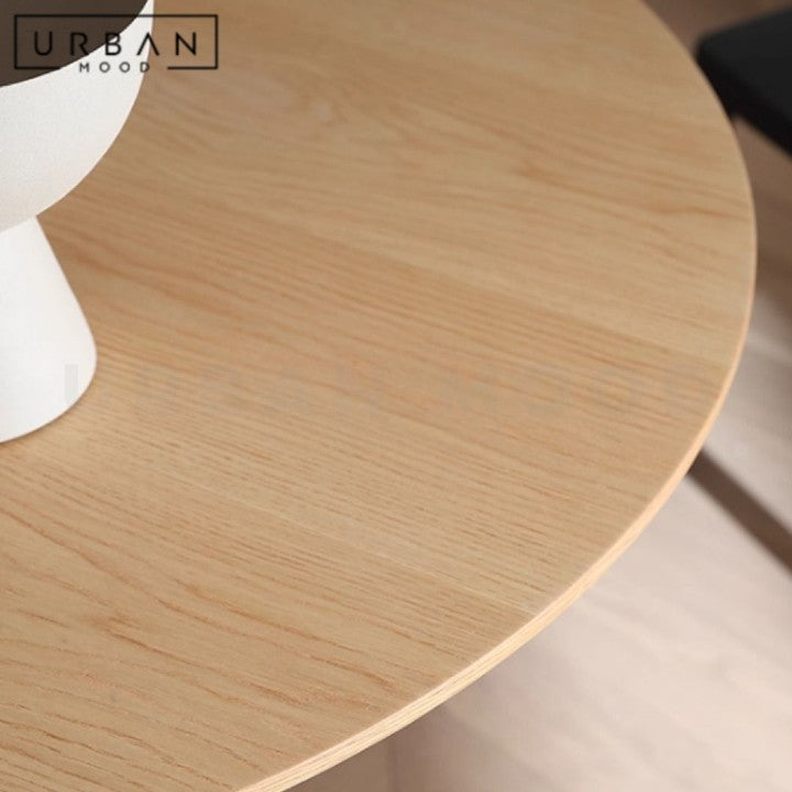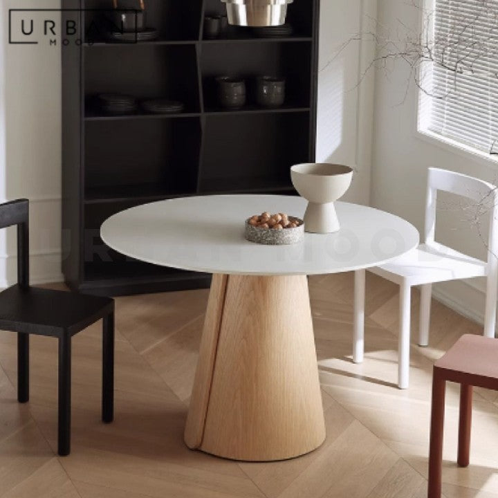 Crafted from solid North American oak wood, our LILOU round table brings radical warmth and durability to everyday meals. Its circular shape encourages easy conversation and creates a welcoming atmosphere for family dinners or casual gatherings. Crafted from North American oak wood, its organic veins and texture sends an inviting message to friends and family. Opt for sturdy sintered stone top for heavy-duty usage. The neutral tones of wood make this the perfect choice for Japandi, Muji, and Scandi homes.