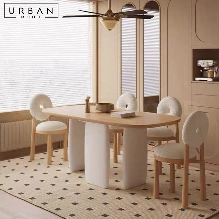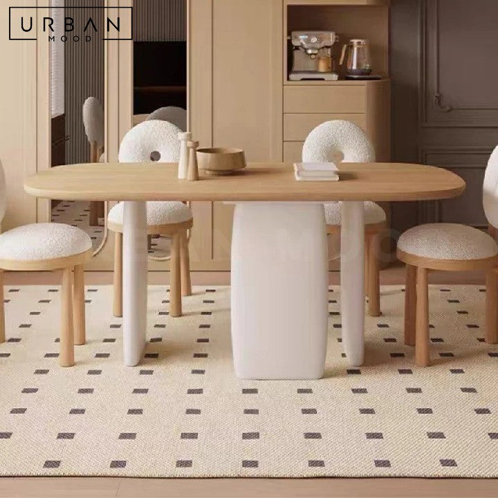 Bring warmth and simplicity to your dining space with our Japandi-style dining table. Crafted from natural pine wood, the table top features a beautiful grain that adds character to any room. The fiberboard legs with rounded corners provide a safe and stable base. Pair this table with our BURRO chairs to create a harmonious and inviting dining setting that embodies the Japandi philosophy of minimalism and functionality.