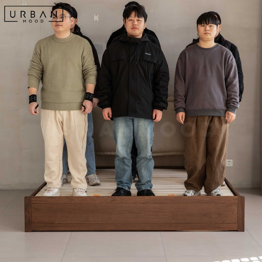 The SANFORT bed is crafted from premium black walnut wood, offering a distinctive warm and organic finish that enhances any rustic, industrial, and Aesop bedroom setting. The integrated head cushions provide comfort for nightly wind downs, making this ideal for the elderly or those with mobility issues, while the hydraulic storage provides convenient space for books, accessories, or nighttime essentials, helping keep your room organized and clutterāfree.