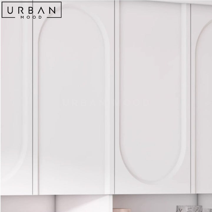 Embrace the clean and minimalist aesthetics of our ISABLE cabinet, featuring roomy shelving concealed by casement doors with an arch motif, adding a contemporary touch to an otherwise simplistic design. Top the cabinet with your favourite wall art or office supplies. The sleek white finish invites nature into your living room, hallway, or office. A must-have for Japandi or cottage inspired spaces.