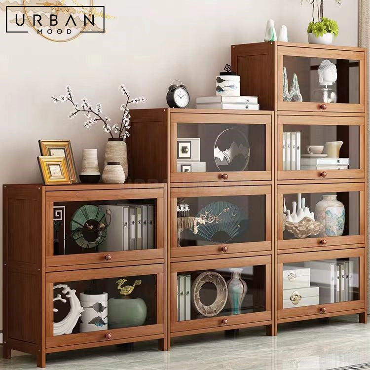 Crafted from pine wood, our VERTEC djsplay cabinet is both durable in construction and timeless in design, adaptong to various placement and styles. Whether you prefer a rustic, farmhouse, or industrial look, this storage unit complements your design preferences, offering a practical and elegant element for your living room, home office, or bedroom. Deep and spacious shelving allows for organization of your books, files, and clothes, making it a perfect choice for storage and style in any living area.