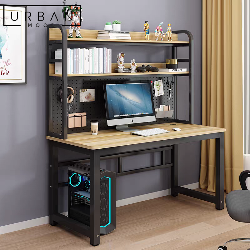 A self-sufficient work station with overhead shelves for your books and figurine collections, or FOCAL work desk also comes with a wire bulletin board for your to-do lists and Polaroid shots. Perfect for your home office or study corner, complete the look with our STANNER or PLUM computer for an industrial or modern look.