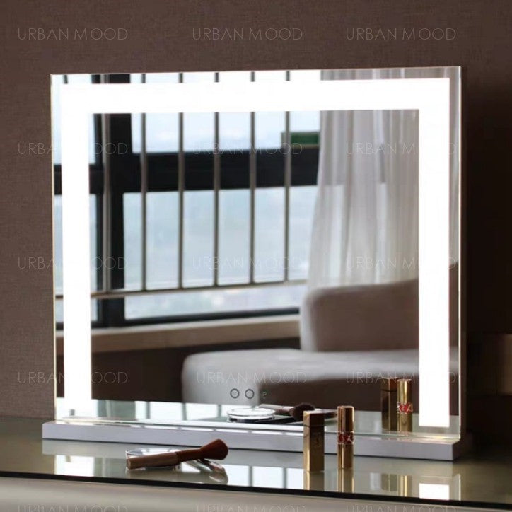 Beautify yourself with precision, with this one touch LED light equipped vanity mirror. Switch between warm and cool light with one turn of the switch knob.