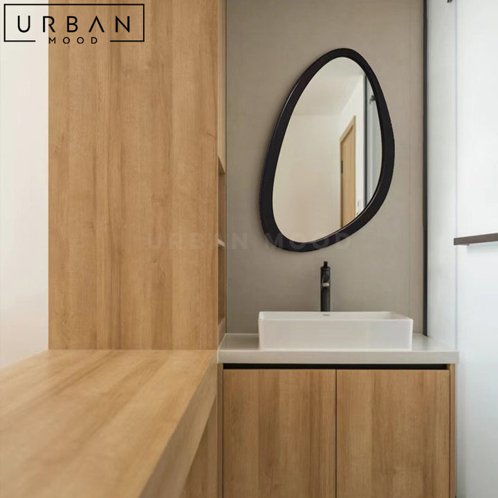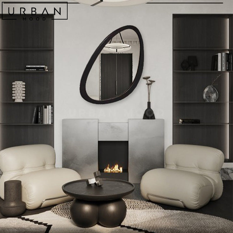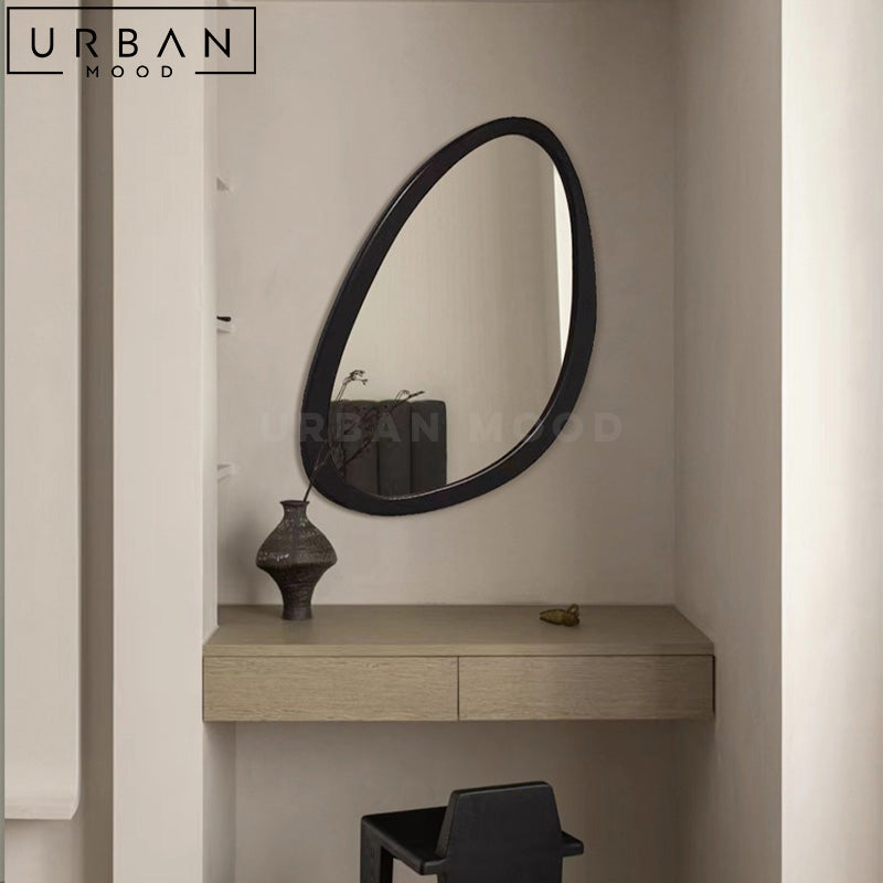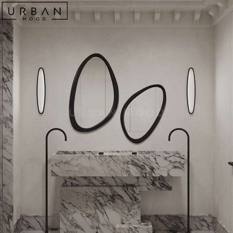 Turn your hallway or bathroom into a mid-century modern setting with our NOELY accent mirror. Featuring an irregular shaped frame, this unique mirror is designed to draw attention, in addition to creating the illusion of an extended space. This mirror design will accentuate contemporary, eclectic, or minimalist hallways, living rooms, bathrooms, or dressers.