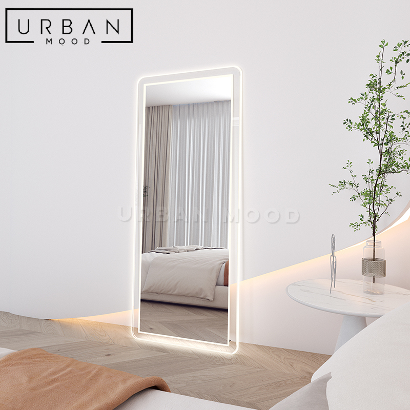 Encased in a sleek glass border, the VENSON full length mirror provides illumination for your morning and night routines. A simple touch button activates the LED backlight, flooding your space with the ambience you need. For a hassle-free experience, lean the mirror against your wall and complete the look with a high pile rug and our ATMOS vanity stool.