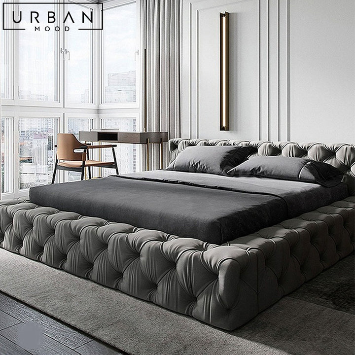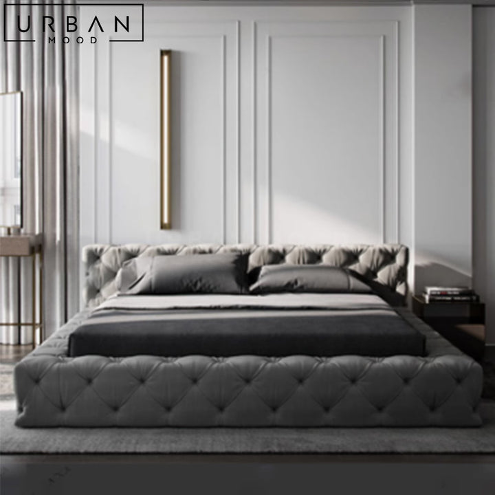 A Victorian-inspired luxury, our CLEO bedframe boasts a low-slung headboard and thick tufted borders. Crafted for both comfort and grandeur, this bedframe makes a regal centerpiece in your bedroom decor. Its plush velvet upholstery and intricate tufting showcases its fine crasftmanship. Whether placed in a Victorian-style bedroom or as a statement piece in a modern setting, this bedframe will anchor your bedroom in style and luxury.
