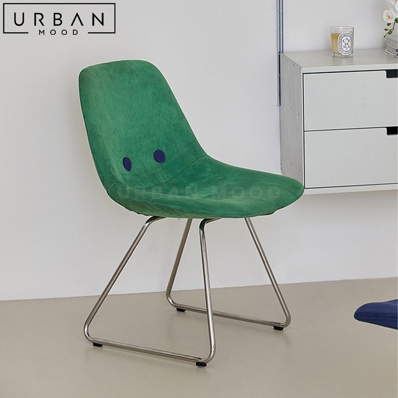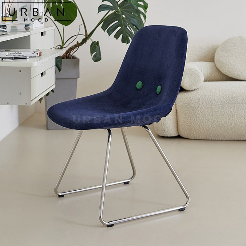 Upholstered in luscious velvet and balanced upon a sleek stainless steel frame, our ENOR dining chair offers a cozy seating experience. Its eclectic style complements contemporary and playful interior styles, adding a touch of whimsy to your dining room or office space. With its curved backrest and modern aesthetic, this chair is the perfect choice for creating a contemporary and inviting conversational space.